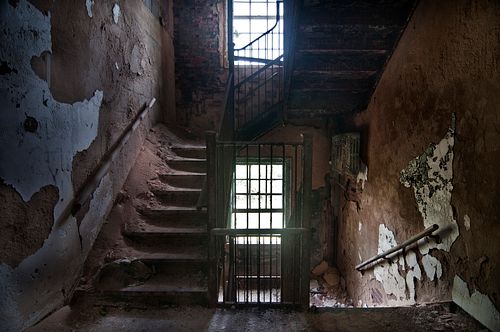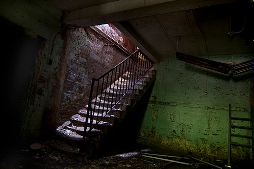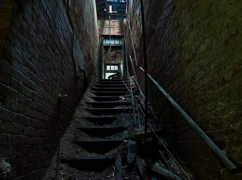 2014, digital painting on digital photo collage of Woman Walking Downstairs, 1887, by Eadweard Muybridge